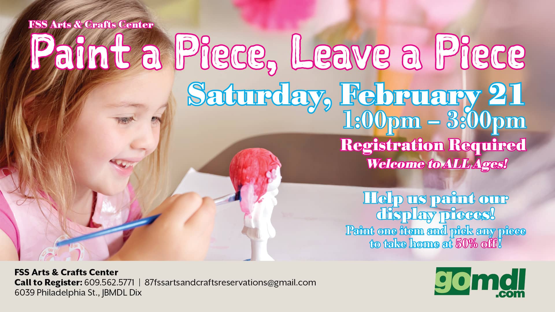 1:00pm – 3:00pm, FSS Arts and Crafts Center We are painting our display stock and need your help to paint all the pieces! If you can stop by and paint […]