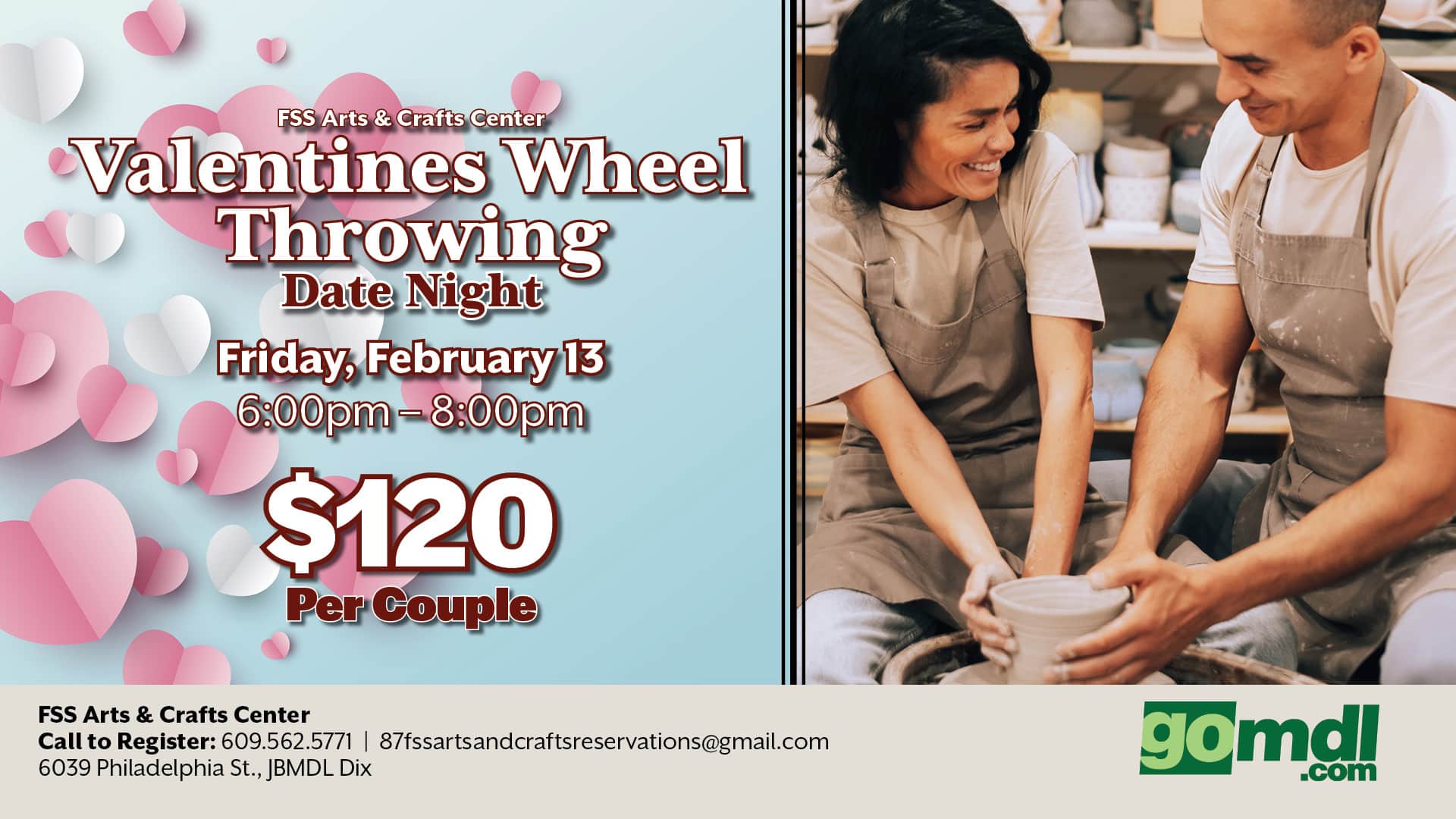 6:00pm – 8:00pm, FSS Arts and Crafts Center Learn how to wheel-throw a cup or bowl together with your date. Once your unique piece is completed pick out a glaze […]