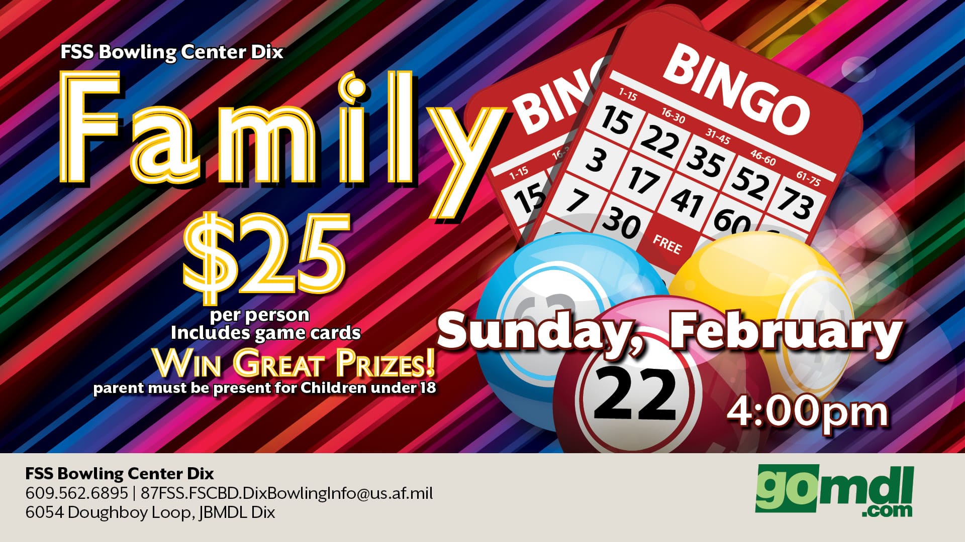 12:00pm. 87FSS Dix Bowling Center, 6054 Doughboy Loop, JBMDL Dix. Warm up those vocal cords because BINGO is coming! Each game pack is $20 per person, which includes your game cards. Additional cards can be purchased for individual games. Win Great prizes! For Example: Six Flags Great Adventure tickets, Hershey Park Tickets, Medieval Times Tickets, […] |