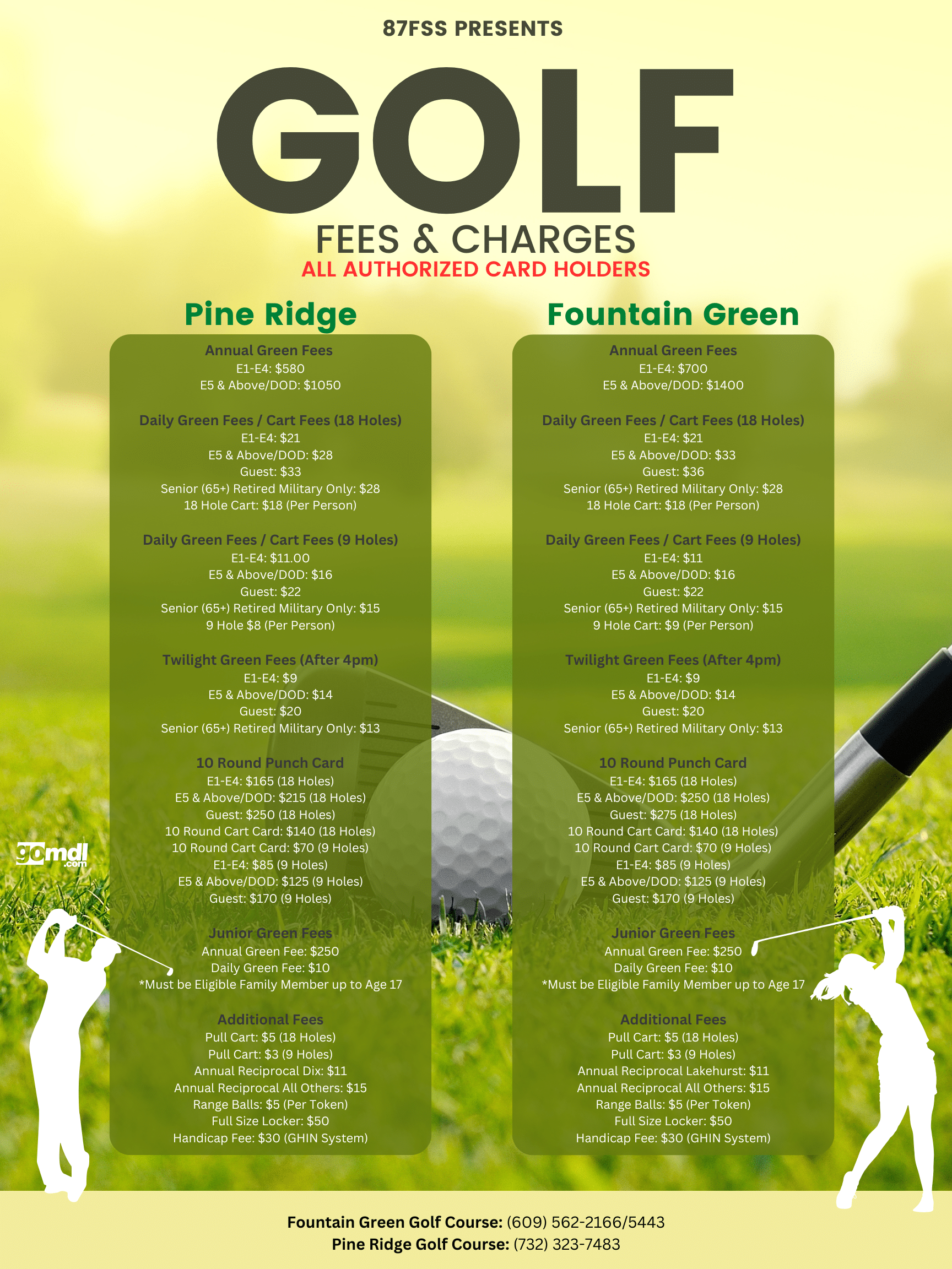 B McGuire-Dix-Lakehurst Golf Courses are open to all active-duty military, retired military, reservists, civilian employees, family members, and guests. We offer the services and programs listed below.